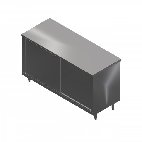 Work Table, cabinet base with sliding doors, 72"W x 24"D, 16/300 stainless steel flat top, Stallion Safety Edge front, 18/430 stainless steel body, stainless steel legs with adjustable feet, NSF