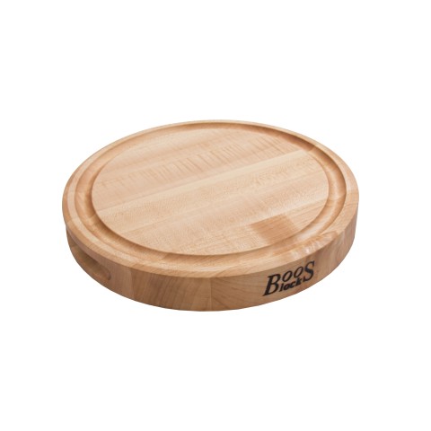 Cutting Board, round, 12" dia. x 1-3/4" thick, edge grain construction, Northern Hard Rock Maple, with Oil Finish, juice groove (one side), reversible with recessed finger grips