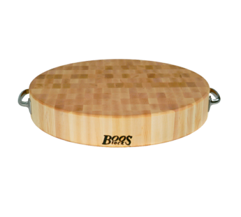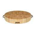 Gift Collection Cutting Board, 18" dia. x 3" thick, end grain construction, Northern Hard Rock Maple, with Oil Finish, stainless steel handles, non-reversible