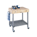 Cucina D'Amico Cart, 30"W x 24"D x 35-1/2"H overall size, 5" thick end grain top, Northern Hard Rock Maple, with Oil Finish, with stainless steel tubular undershelf, stainless steel towel bar, stainless steel legs, 3" locking casters, KD