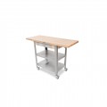 Cucina Elegante Cart, 50"W x 20"D x 35"H overall size, 1-1/2" thick edge grain top, Northern Hard Rock Maple, with Varnique finish, (2) 10" drop leaves, (1) stainless steel front dovetailed drawer, (2) stainless steel shelves, stainless steel legs, 3" locking casters, KD