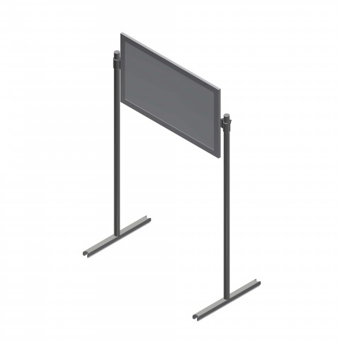 Demo Mirror, table mounted, 49-1/4"W x 22-1/2"H, adjustable tilting glass mirror, aluminum frame with safety backing, 60"H x 1-5/8" dia. 16ga stainless steel tube uprights, for 60"W x 30"D stainless steel tables (requires factory installed bracket to JBC table)