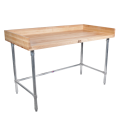 Work Table, baker's top, 48"W x 24"D, 1-3/4" thick top with 4" coved riser on back & both ends, Northern Hard Rock Maple, galvanized legs, side & rear adjustable bracing, bullet feet, NSF, KD
