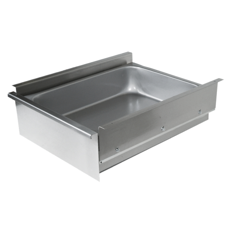 Drawer, for wood top work tables, 15"W x 20" front-to-back x 5" deep, stainless steel front & drawer pan, roller bearing slides, NSF