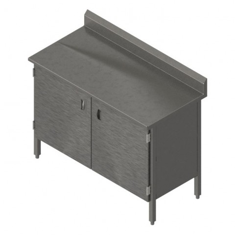Work Table, cabinet base with hinged doors, 48"W x 30"D, 16/300 stainless steel top with 5" backsplash, Stallion Safety Edge front, 90° turndown on sides, stainless steel base, undershelf, & 1" adjustable bullet feet, all welded set-up, NSF