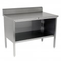 Work Table, cabinet base with open front, 72"W x 30"D, 14/300 stainless steel top with 5" backsplash, Stallion Safety Edge front, 90° turndown on sides, stainless steel base, undershelf, & 1" adjustable bullet feet, all welded set-up, NSF