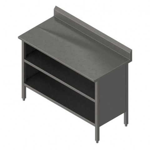 Work Table, cabinet base with open front, 48"W x 30"D, 16/300 stainless steel top with 5" backsplash, Stallion Safety Edge front, 90° turndown on sides, stainless steel base, undershelf, & 1" adjustable bullet feet, all welded set-up, NSF (image shown with optional midshelf)
