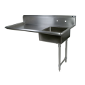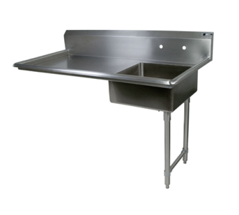 Undercounter Dishtable, soiled, straight design, 50"W x 30"D x 44"H overall size, for right-to-left, 20"W x 20" front-to-back x 8" deep pre-rinse sink, 10" boxed backsplash with 45° top & 2" return, (1) set of splash mount faucet holes with 8" centers, 18/300 stainless steel top, galvanized legs & bracing, plastic bullet feet, NSF