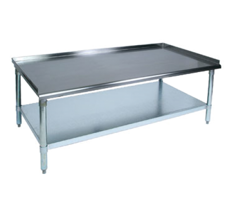 Equipment Stand, 15"W x 30"D x 24"H, 18/430 stainless steel top with 1-1/2" turned up edge on back & both sides, galvanized legs & adjustable undershelf, plastic bullet feet, NSF, KD (Available in Effingham and Nevada)