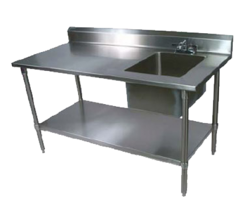 Work Table With Prep Sink, 48"W x 30"D x 40-3/4"H overall size, (1) 16"W x 20" front-to-back x 12" deep sink bowl on right, 5"H backsplash, includes 10" swing spout faucet 4" O.C., 16/300 stainless steel top, galvanized legs & adjustable undershelf, 1" galvanized adjustable bullet feet, NSF, CSA-Sanitation, KD (available in Effingham and Nevada)