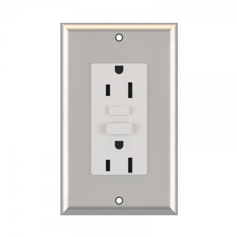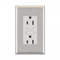 Heavy duty UL listed NEMA 5-15 GFCI receptacle, stainless steel face plate, maximum load 125VAC 12A, gray (pre-wiring not included)