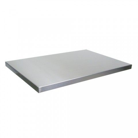 Countertop, 120"W x 27"D x 1-1/2" thick, 16/300 stainless steel with #4 polish, 1-3/8" thick premium particle board with melamine backing underlayment, NSF