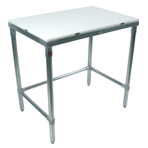 Cutting Table, 72"W x 30"D x 35-3/4"H overall size, 3/4" reversible flat poly top, galvanized legs, adjustable side & rear bracing, & bullet feet, NSF, CSA-Sanitation, KD