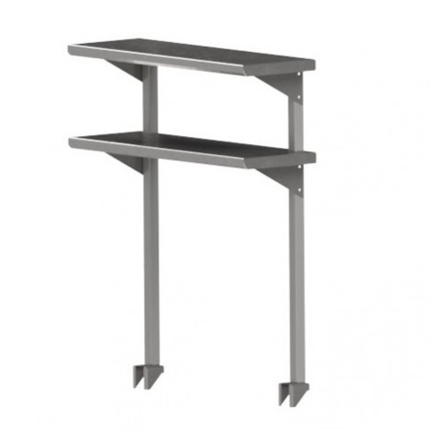 Overshelf, cantilevered, double, 36"W x 12"D, 16/300 stainless steel flat top, mounted 18" above table top, 12" between shelves, 1-1/2" stainless steel C-channel upright, KD, NSF