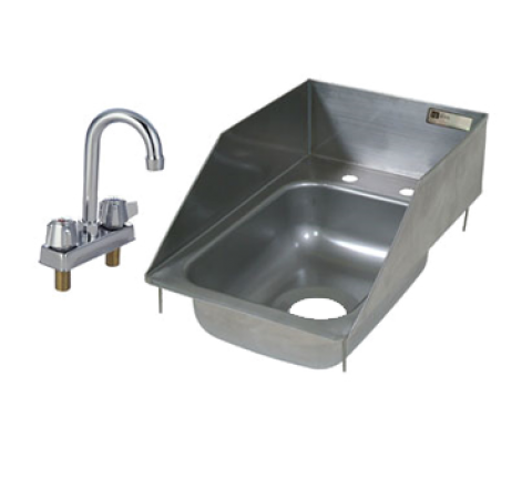 Pro-Bowl Drop-In Sink, 1-compartment, 12-5/8"W x 18-1/2"D x 11"H overall size, (1) 10"W x 14" front-to-back x 5" deep bowl, deck mount faucet holes with 4" centers, 3-5/16" drain opening with basket drain, with left & right side splashes, stainless steel construction, includes economy gooseneck faucet (PBF-4-DLF), NSF, CSA-Sanitation (Available in Effingham and Nevada)