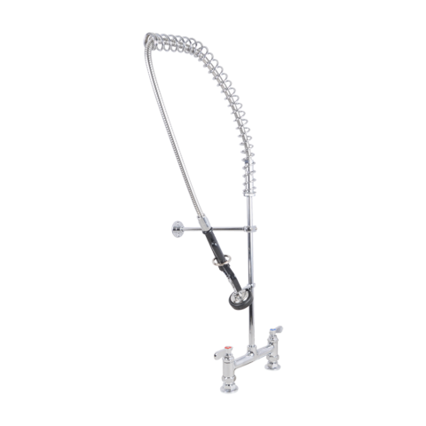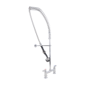 Prerinse Unit, deck mount, flex stainless steel hose, 4" centers, 1/4 turn cramic cartridges, color coded hot/cold indicators, integral check valve, 1/2" NPT, includes 12" wall bracket, NSF, ADA Compliant (LEAD FREE FAUCET)