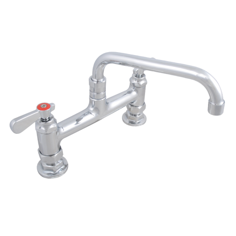 Heavy Duty Faucet, deck mount, 12" swing spout, 8" centers, 1/4 turn ceramic cartridges, color coded hot/cold indicators, integral check valve, 1/2" NPT, chrome finish, NSF, ADA Compliant (LEAD FREE FAUCET)