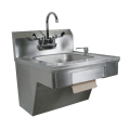 Pro-Bowl Hand Sink, wall mount, 14"W x 16" front-to-back x 5" deep bowl, (1) set of splash mount faucet holes with 4" centers, 1-7/8" drain, drain basket included, soap & towel dispenser, removable front panel, includes mounting bracket, stainless steel construction, ADA compliant, NSF, CSA-Sanitation (Goose neck faucet included with wrist blades)
