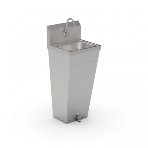 Pro-Bowl Hand Sink, floor mount, tappered pedestal, 14"W x 10" front-to-back x 5" deep bowl, 9-3/4"H backsplash, (1) centered splash mount faucet hole, 3-1/2" gooseneck spout, 2" drain opening with basket drain, single foot valve (PBF-FV1-SM-35GLF), 18/300 stainless steel construction, NSF