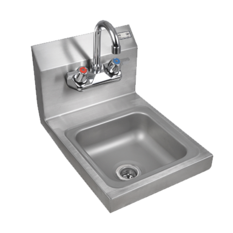 Pro-Bowl Hand Sink, wall mount, 12"W x 14-1/2"D x 12-1/4"H overall size, 9"W x 9" front-to-back x 5" deep bowl, splash mount faucet holes with 4" centers, 2" drain opening with basket drain, all stainless steel construction, includes mounting bracket, NSF, CSA-Sanitation (splash mount faucet included) (Available in Effingham)