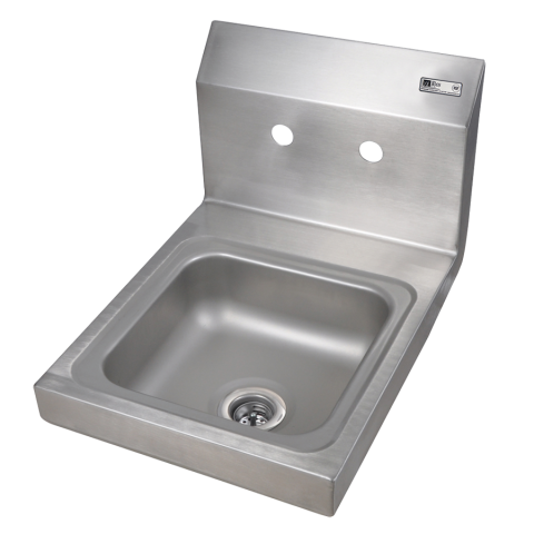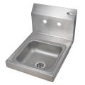 Pro-Bowl Hand Sink, wall mount, 12"W x 14-1/2"D x 12-1/4"H overall size, 9"W x 9" front-to-back x 5" deep bowl, splash mount faucet holes with 4" centers, 2" drain opening with basket drain, all stainless steel construction, includes mounting bracket, NSF, CSA-Sanitation (faucet NOT included)