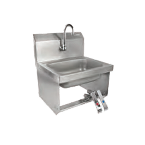 Pro-Bowl Hand Sink, wall mount, 14"W x 10" front-to-back x 5" deep bowl, (1) centered splash mount faucet hole, gooseneck spout, double knee valves, 2" drain opening, includes basket drains & wall brackets, all stainless steel construction, NSF, (knee valve faucet included) (Available in Effingham and Nevada)