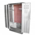 Mat Wash Cabinet, 48"W x 22-1/2"D x 84"H overall size, enclosed cabinet with open back for plumbing, (2) lockable louvered swinging doors, includes: 44" x 16" x 6" deep sink with drain, overhead shelf, rear mounted mat holder, side mounted mop holder with (2) locking cams, service faucet and 120" hose, 18/300 stainless steel