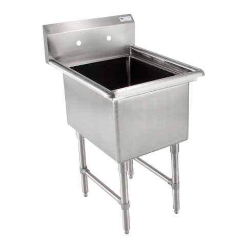 Mop Sink, 25-5/8"W x 21-1/8"D x 35-5/8"H overall size, (1) 20" W x 16" front-to-back x 12" deep compartment, 10"H boxed backsplash, (1) set of faucet holes with 8" centers, 16/300 stainless steel construction, stainless steel legs, adjustable side bracing, adjustable stainless steel bullet feet