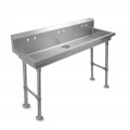 Multi-Station Handwash Sink, freestanding, (2) single hole splash mount faucet holes, 40"W x 19-5/8" front to back x 5" deep bowl, 16/300 stainless steel sink, stainless steel legs and adjustable bracing, adjustable flanged feet with holes, KD, Made in USA