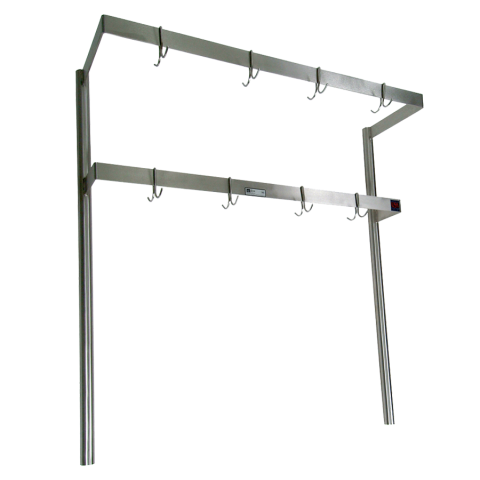 Pot Rack, table mount, double bar, 79-1/4"W x 13-5/8"D x 48"H overall size, 3/16" x 2" stainless steel flat bar, includes (14) stainless steel double hooks, 16/300 stainless steel construction, NSF, CSA-Sanitation (requires factory installed bracket to JBC table)