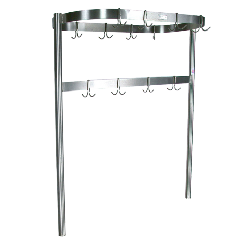 Pot Rack, table mount, square, 139-1/4"W x 18"D x 48"H overall size, 3/16" x 2" stainless steel flat bar, includes (36) stainless steel double hooks, 300 series stainless steel construction, NSF, (requires factory installed bracket to JBC table)