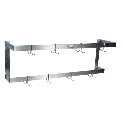 Pot Rack, wall mount, double bar, 48"W x 12"D x 16"H overall size, 3/16" x 2" stainless steel flat bar, includes (8) stainless steel double hooks, NSF, (Available in Effingham and Nevada)