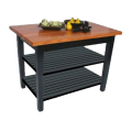 Rouge et Noir Le Classique Table, 48"W x 30"D x 35"H overall size, 1-1/2" thick edge grain top, American Cherry, with Varnique finish, (2) black slatted undershelves, tapered legs, black painted base