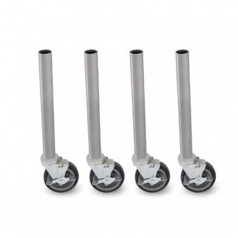 Legs with Casters, 5" heavy duty, locking, with 1-5/8" diameter 16/300 stainless steel legs for standard working height of 34-3/4" (set of 4) (FOR FITTING EXISTING TABLES IN THE FIELD WITH CUT LEGS AND CASTERS) (Available in Effingham and Nevada)