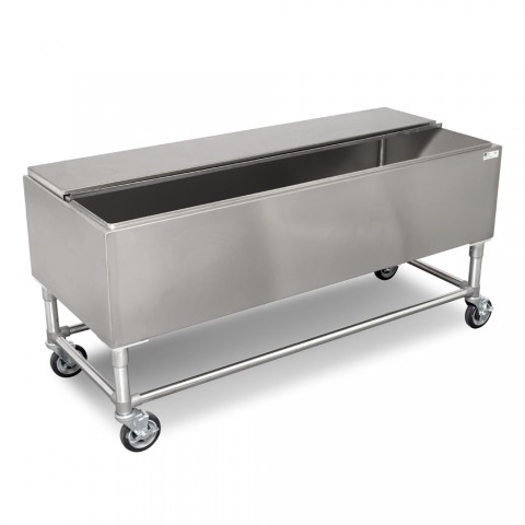 Ice Chest, mobile, 60"W x 24"D x 29-1/2"H, bin size 58"W x 22-1/4"D x 13.5"H, 300 series stainless steel, adjustable bracing with 5" locking casters, NSF
