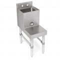 Underbar Blender Station, freestanding with dump sink, 12"W x 21"D x 32-1/2"H overall size, 10"W x 8" front-to-back x 6" deep fabricated sink bowl, 3-1/2"H backsplash, (1) set of removable splash mount faucet holes with 4" centers, blender shelf on front with grommet hole, 18/300 stainless steel construction, stainless steel legs & side bracing, adjustable stainless steel bullet feet, NSF (weights are subject to additional packaging) (Available in Effingham and Nevada)