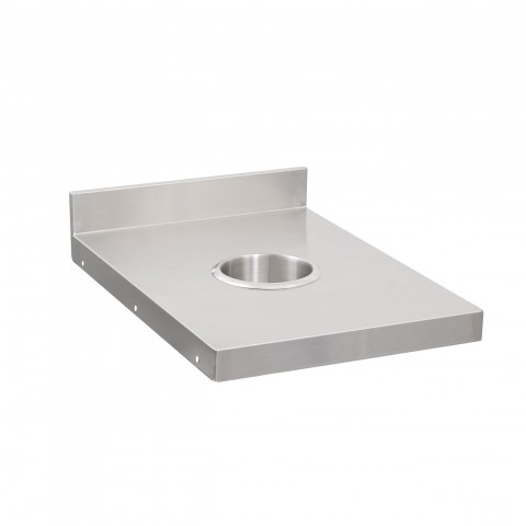Trash Receptacle Cover, 12"W x 24"D x 17"H, mounts between existing equipment, removable trash chute, 16/300 stainless steel construction, accommodates Rubbermaid 16 gal. slim jim trash can 11"W x 22"D x 25"H (slim jim not included), NSF (weights are subject to additional packaging)