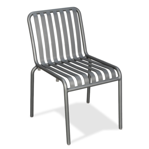 Side Chair, outdoor, stackable, molded and wielded aluminum full-slat seating, silver grey powder coat, Quickship
