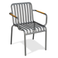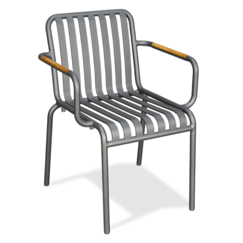 Arm Chair, outdoor, stackable, molded and wielded aluminum full-slat seating, silver grey powder coat, Quickship