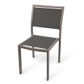 Side Chair, woven upholstered back and seat, for indoor/outdoor use, aluminum frame, black nylon glides,