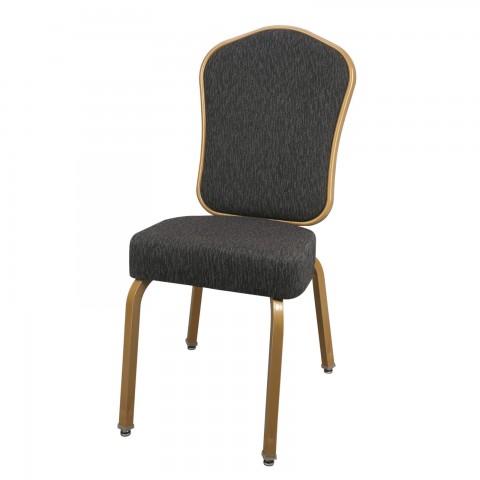 Banquet Collection Elegance Stacking Side Chair, upholstered dual padded floating flex cathedral back with hidden fasteners, upholstered 3" padded top-stich box seat, welded 14 gauge aluminum frame with powder coat finish, black insert-style nickel glides, COM only