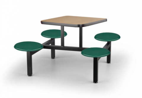 Cluster Table Unit, square, 36" x 36", island style, (4) button style swivel seats, welded steel frame, black, 1-1/8" thick laminated top