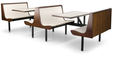 Contour Plus Booth Table Unit, 44"L, double wall unit, laminated seats, welded steel frame, black, 1-1/8" thick laminated top