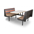 Contour Premium Booth Table Unit, 47"L, single island unit, laminated seats, welded steel frame, black, 1-1/8" thick laminated top, solid wood top, end cap