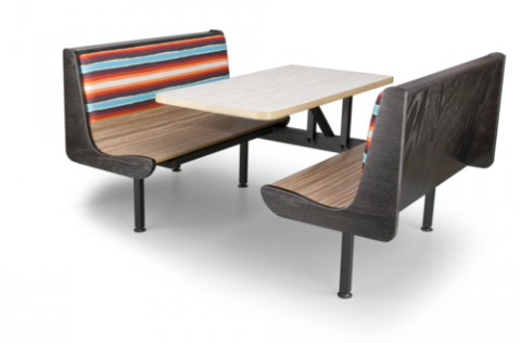 Contour Premium Booth Table Unit, 42"L, single wall unit, laminated seats, welded steel frame, black, 1-1/8" thick laminated top, solid wood top, end cap