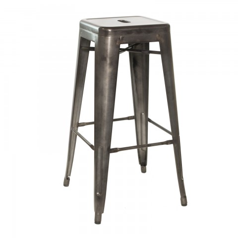 Industrial Collection Bar Stool, backless, metal seat, tolix style, indoor or outdoor use, footrest, galvanized metal frame, gunmetal finish, Quick Ship