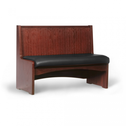 Custom Booth, single, length to be specified x 36"H, wood frame, open bottom, vertical bead-board back, solid wood side, wide top cap, removable padded seat, wood panel outside back, grade 1 uph/COM