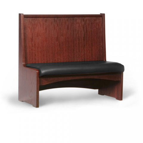 Custom Booth, single, length to be specified x 48"H, wood frame, open bottom, vertical bead-board back, solid wood side, wide top cap, removable padded seat, wood panel outside back, grade 1 uph/COM