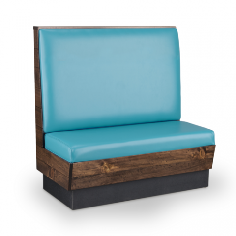 Custom Booth, single, length to be specified x 48"H, horizontal, wood-clad frame with tapered front, wood clad sides and inside front with 3" padded seat, wide top cap, floating seat pad, and wood panel outside back in wood-cladding, PVC kick plate, grade 3 uph