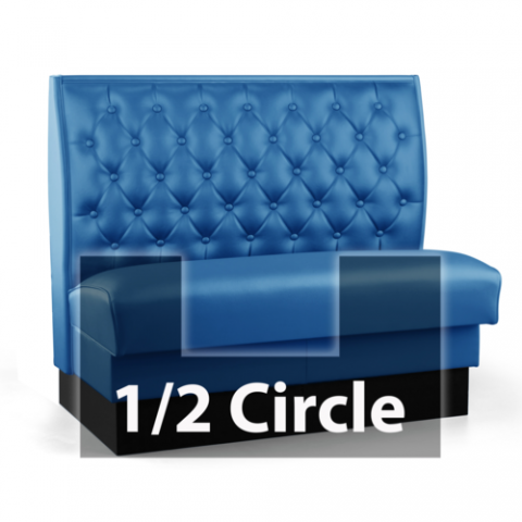 Custom Booth, half-circle banquette with 2 corners, 48" x 90" x 48"L, 42"H, upholstered foam sewn button tufted back with lumbar support, upholstered seat, unfinished outside back, grade 1 uph/COM